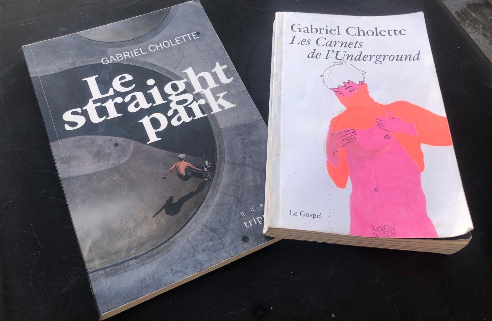I think I have a fetish for dying industries. At least, my initial choice of translation as a career, and my interest in books, seems to suggest that. When I initially became a translator I did so sort of cynically, jumping into commercial translation just because as someone who wanted to be an artist, it was a gig I saw and thought, ‘I guess I could do that.’ I’ve often envied people for whom it is a passion. But translating something like this, this interview I conducted in French with Quebecois writer Gabriel Cholette, is nothing but pleasurable, and it makes me understand those people better. We spoke about living and thinking in between two different languages and the strangeness of inhabiting that sort of interstitial space. While we were talking I thought, this is exactly the kinds of conversations I want to be having more of in my life. Lucky for me, this is the first in what I hope will be a series of many conversations with authors who think and write between English and another language. I first came into Gabriel’s work knowing nothing about it when, at a book festival in Paris, a bookseller recommended Notes from the Underground, his first book, to me. He said it was about partying & hooking up & doing drugs & looking for love in Berlin, and it did not disappoint. I read it in French, but it is also available in English. After reading and also greatly enjoying his second book, Le Straight Park, which takes a queer look at skate parks/culture, and noting that both books, while in French, heavily feature English and do a lot of thinking between the two languages, I thought, ‘Ok, I need to talk to this guy.’ So we met on Zoom – him in Montreal, and me in Paris – and had the following conversation. Incidentally, over the course of it I learned that while the first book is available in English, the second one hasn’t been slated for translation yet. But if you’re an English language publisher and this conversation is making you think ‘Hey, someone should really translate that gay skating book…’ – feel free to hit me up.