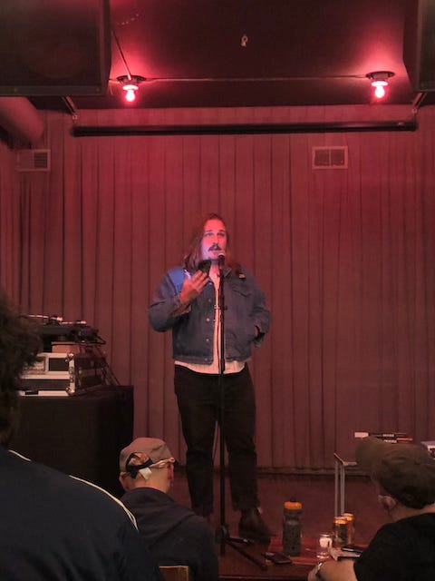 After the show, I caught up with Adrian Sobol at the bar. I saw Adrian—whose book Hair Shirt you need to go buy right now—for the first time several months ago, right there at the Whistler.