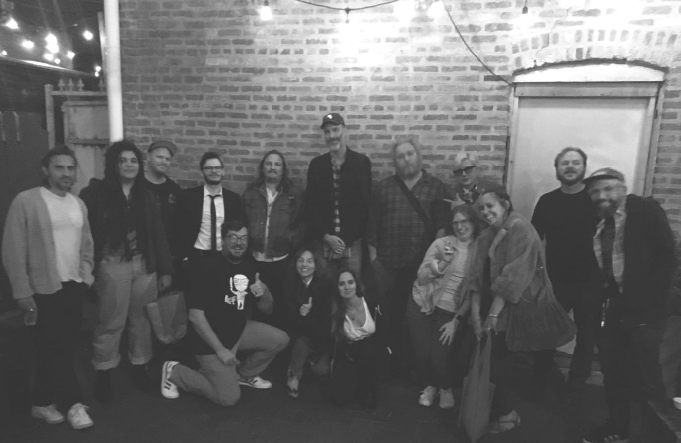 If Friday night felt like Chicago lit’s living room, Saturday was its fever dream. The second evening of the offsite was organized by Mallory herself at Bucktown jewel Gallery Cabaret. The bar, while only a stone’s throw from the Whistler, offered a decidedly different energy than the previous night. (Mallory describes the space in her own Zona Motel dispatch: “Inside, the room is cluttered in the best way. A long black bar stacked deep with bottles, at least three different kinds of Malört.”)