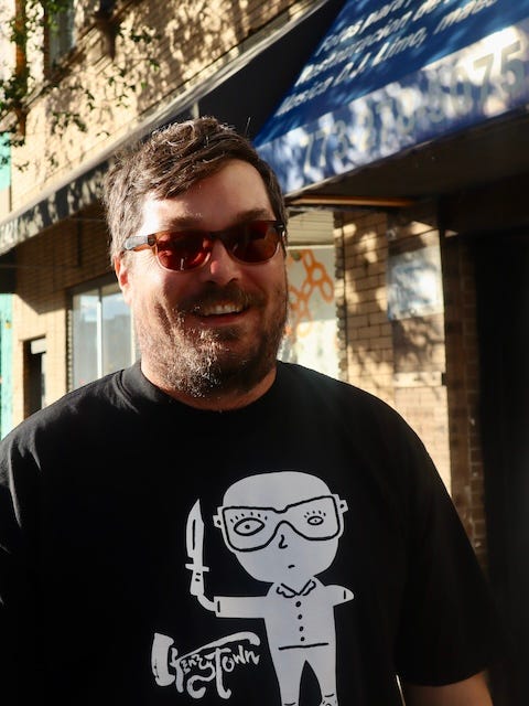 On the patio, I bummed a cigarette from Justin Finley of Raging Opossum Press. He wanted you to know that he’s writing a memoir all the time.
