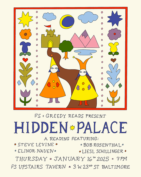 JG: I don’t want to start another reading series anytime soon (unless it’s a job I’m being paid to do). But silly old AWP is in Baltimore in 2026, so there will be a Hidden Palace on that Thursday, March 5th.
