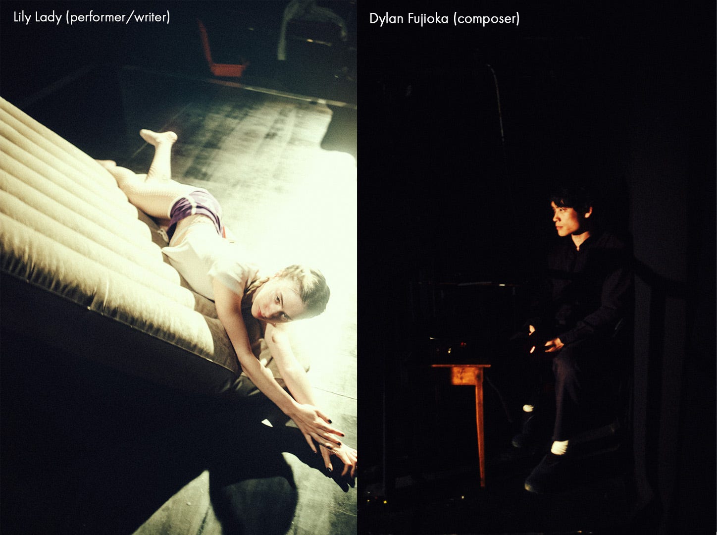 The third act is “The Kid”: two men dance in an office chair, perilously balancing in a way that made me nervous. But they’re like children, not concerned about getting hurt as they whirl one another around in the chair, climbing over each other without much sexuality or desirability. This act eschewed any spoken narrative, leaving the audience to create our own. Detached from story, I could focus on their playful acrobatic-like dancing. At some point the music (an original score by Dylan Fukioka) became discordant, with their movements becoming more disconnected, more of a push-pull.